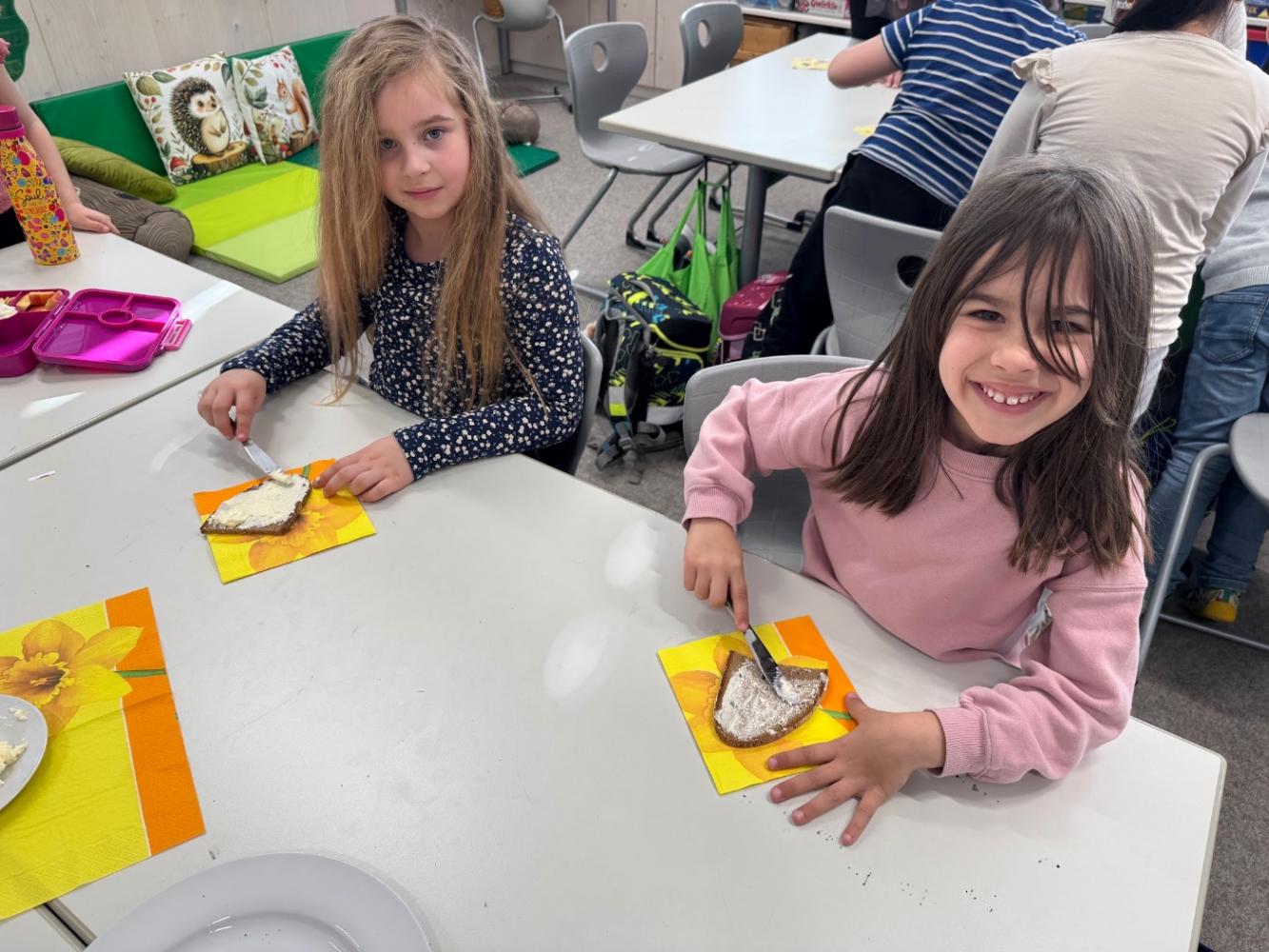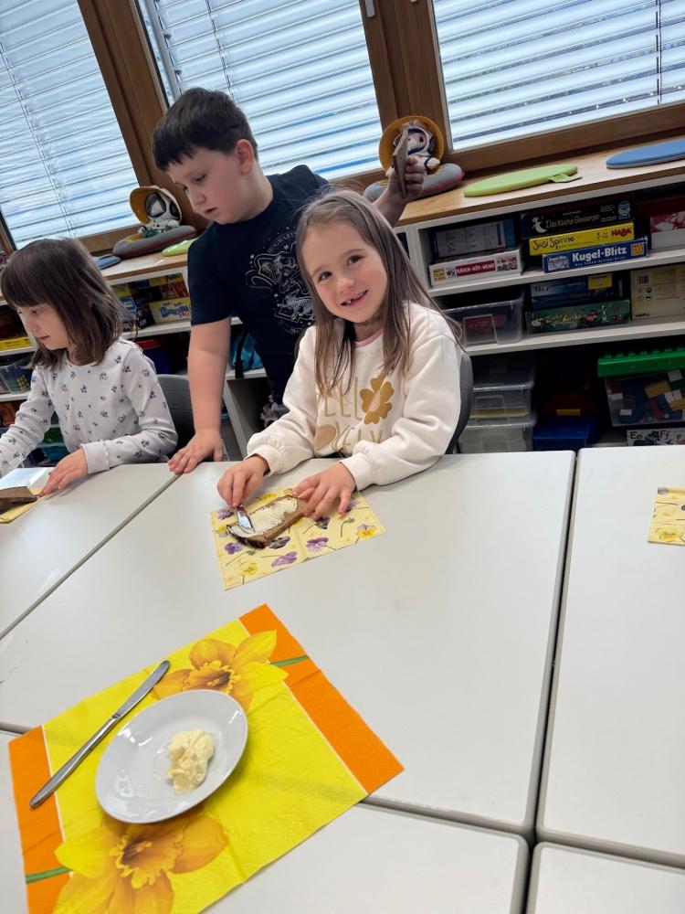 Buchstaben mit allen Sinnen: Bb wie Butterschütteln von Sandra Winkler 03. März 2026 Heute stellten die Kinder der Klasse 1a Butter her. Butter zu cooler Musik schütteln, Butterbrote selbst streichen und dann gemeinsam genießen... So macht Buchstabenlernen Spaß!